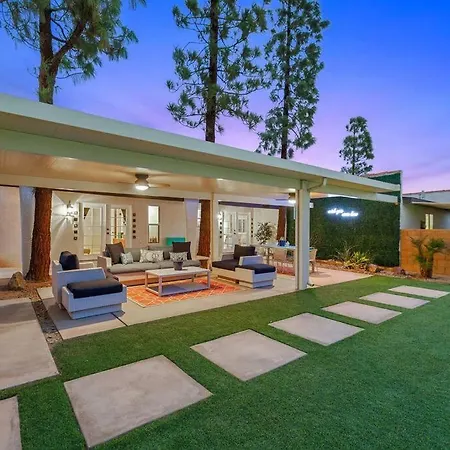 Located within a 10-minute drive of Palm Springs Dog Park, the 2-bedroom Casita Cerritos - Luxurious Modern Retreat In Palm Springs Villa provides access to a swimming pool. Featuring a Jacuzzi, the accommodation is nestled within a 10-minute drive of O'Donald Golf Course.